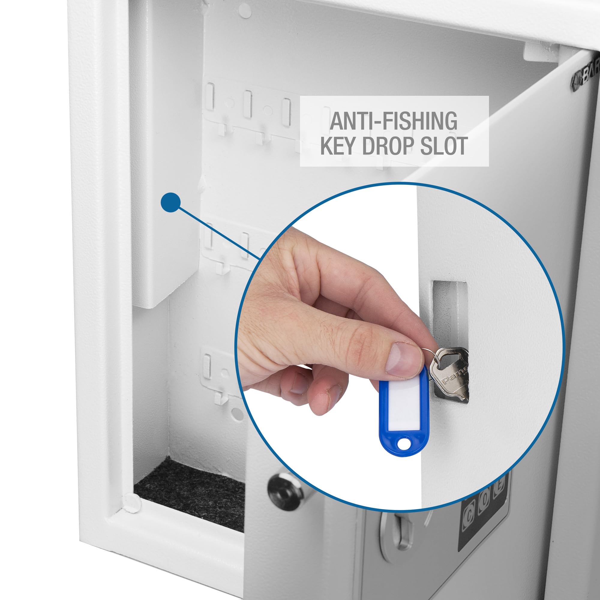 - BARSKA Quick Access Key Cabinet Digital Wall Safe can hold up to 40 keys on numbered hooks and comes with colored key tags. Our key cabinet is designed to be spacious, well-constructed, and convenient for securely storing your keys.