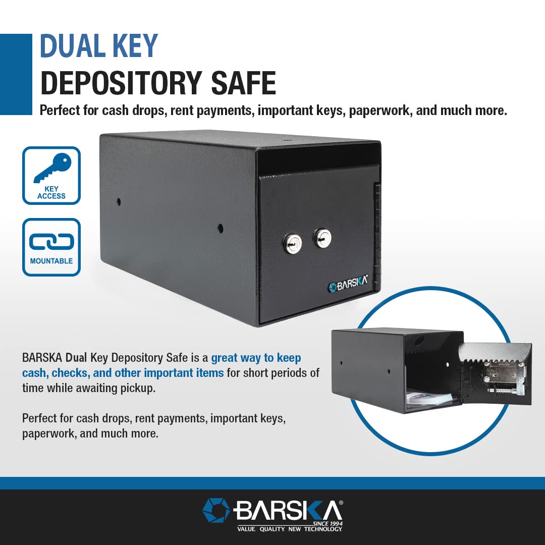 Barska Key Lock Depository Drop Safe – Steel Lock Box with Drop Slot, Anti-Fishing Baffle, for Cash, Receipts, Keys & Valuables – Ideal for Business & Office Use